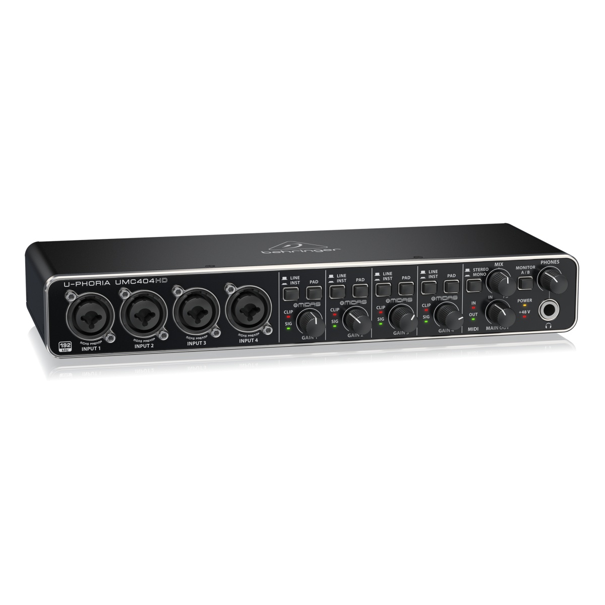 Interfaz Placa de Audio Behringer U-Phoria UMC404HD – 4 Entradas, 4 Salidas, MIDI y USB