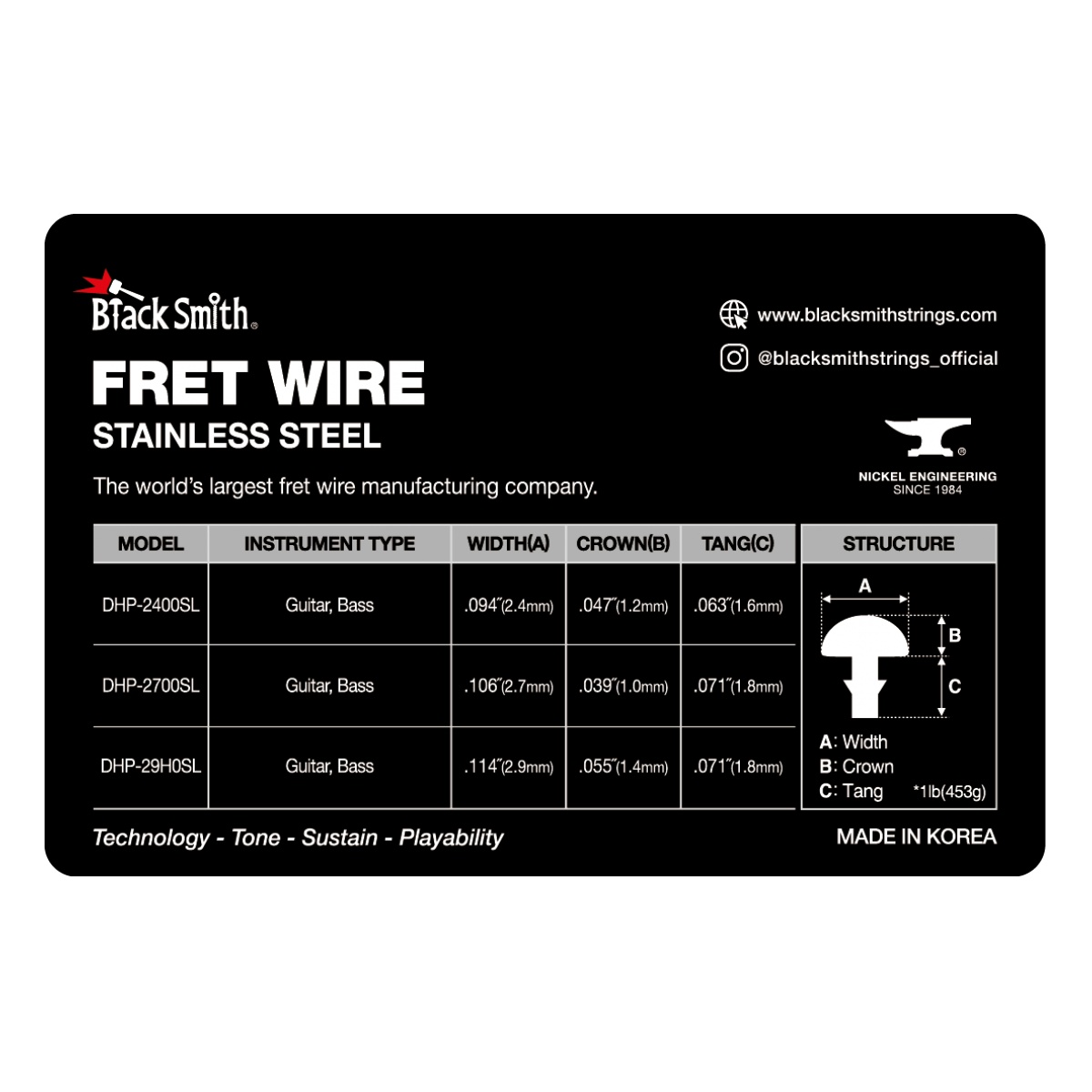 Tira de trastes para guitarra bajo Blacksmith Medium Jumbo DHP2700SL Acero Inox.