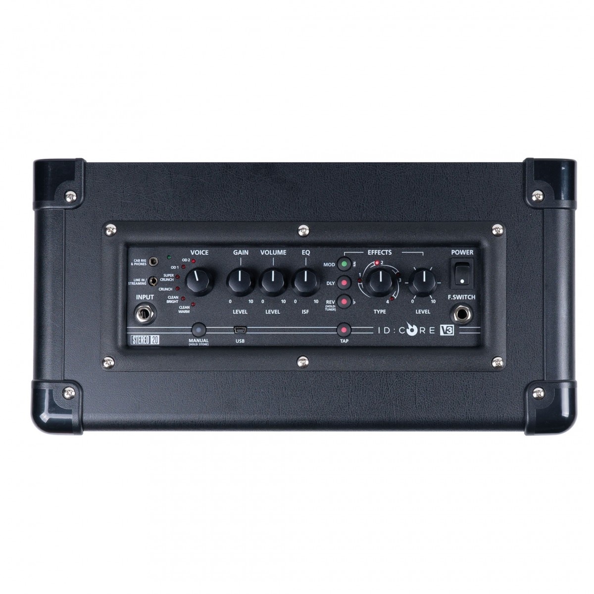 Pero la diversión no ha hecho mas que empezar. Este amplificador se ha diseñado para realizar retransmisiones en directo desde casa. Mediante un cable TRRS de 3,5 mm, podrá conectar facilmente el ID:Core a un dispositivo de streaming para retransmitir su sonido a las masas. Si lo que quiere es practicar con un sonido excelente, puede utilizar la salida de simulación de pantalla/salida de auriculares para emular sus pantallas favoritas. Con una serie de efectos y con la tecnologia ISF, desarrollada por Blackstar, que permite alternar entre un tono americano y uno británico, este es un amplificador que querrá tener siempre a su lado.