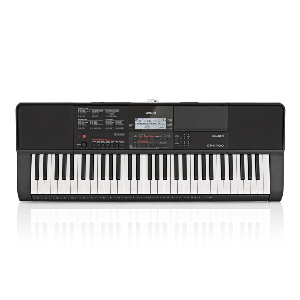 El piano Casio CT-X700 es un teclado de la gama CT-X que cuenta con muchísimas funciones. El teclado le permite cambiar una serie de funciones para que pueda moldear la respuesta de sus preferencias individuales. Casio también ha incluido opciones de aprendizaje con lecciones integradas, funciones split y layer además de la posibilidad de seleccionar distintas partes para reproducir las canciones integradas. Para aquellos que les gusta componer al teclado, pueden utilizar además las funciones MIDI. Este es un teclado verdaderamente versátil.