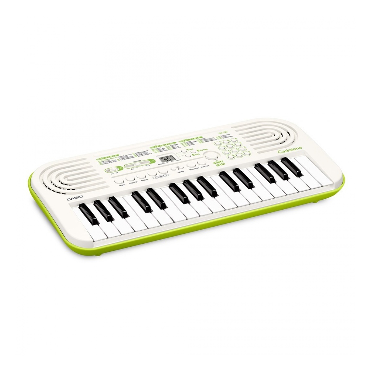 El Casio SA-50 es un primer teclado ideal para los jóvenes, así como un gran teclado para llevar de viaje. Con 32 teclas pequeñas, este instrumento tiene una gama impresionante para un factor de forma tan pequeño, los 100 tonos incluidos también proporcionarán una amplia gama de timbres para que usted pueda experimentar. Gracias a su portabilidad, el SA-50 se sentirá como en casa en un aula, una sala de juegos, una sala de prácticas, el salón o cualquier otro lugar donde quiera hacer música.