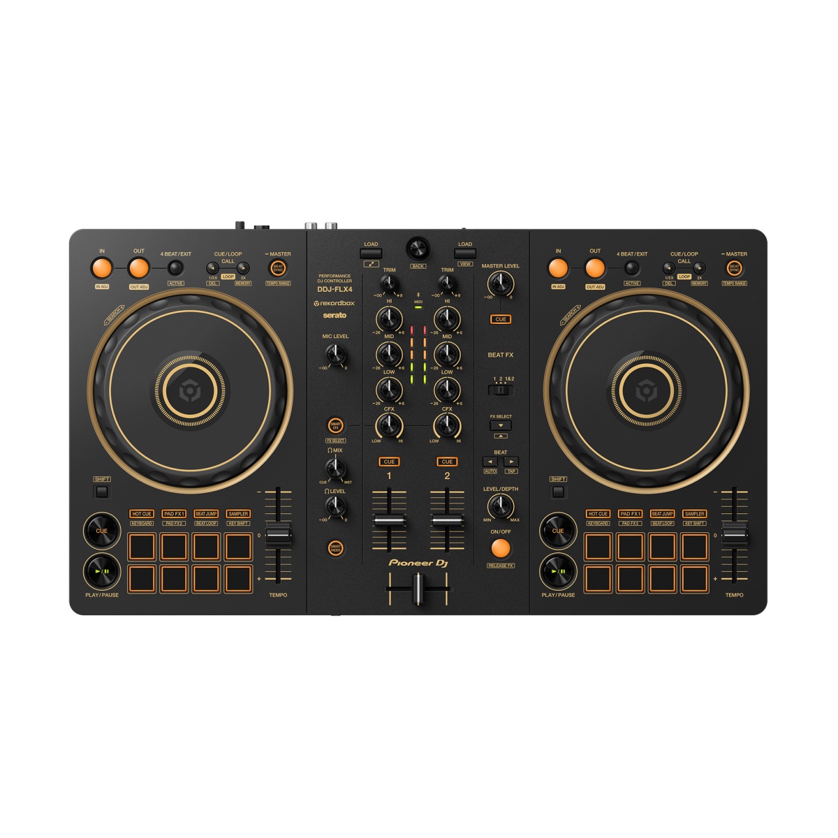 Controlador DJ Pioneer DDJ-FLX4-N, 2 Canales, Interfaz Integrada, Rekordbox, USB-C, Dorada