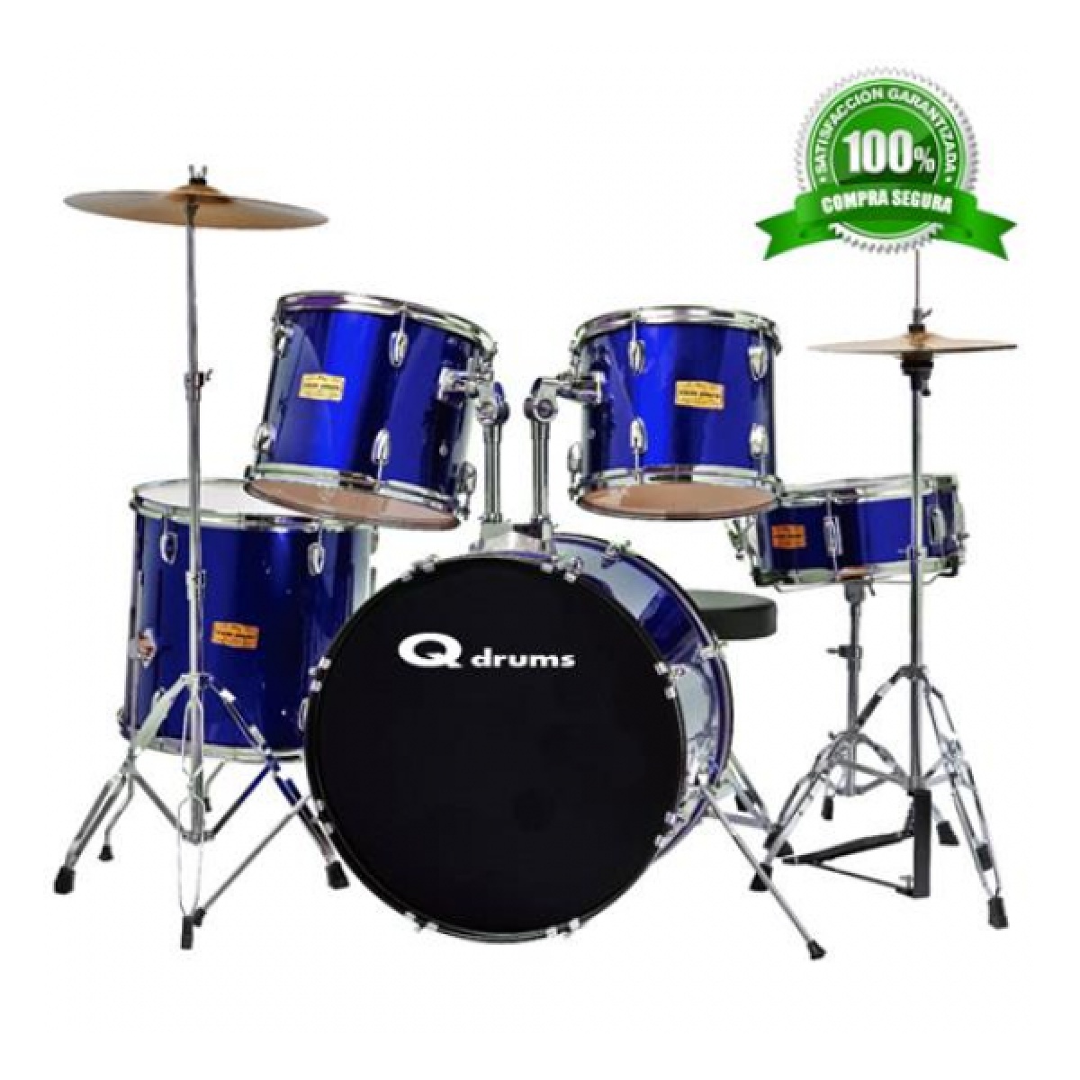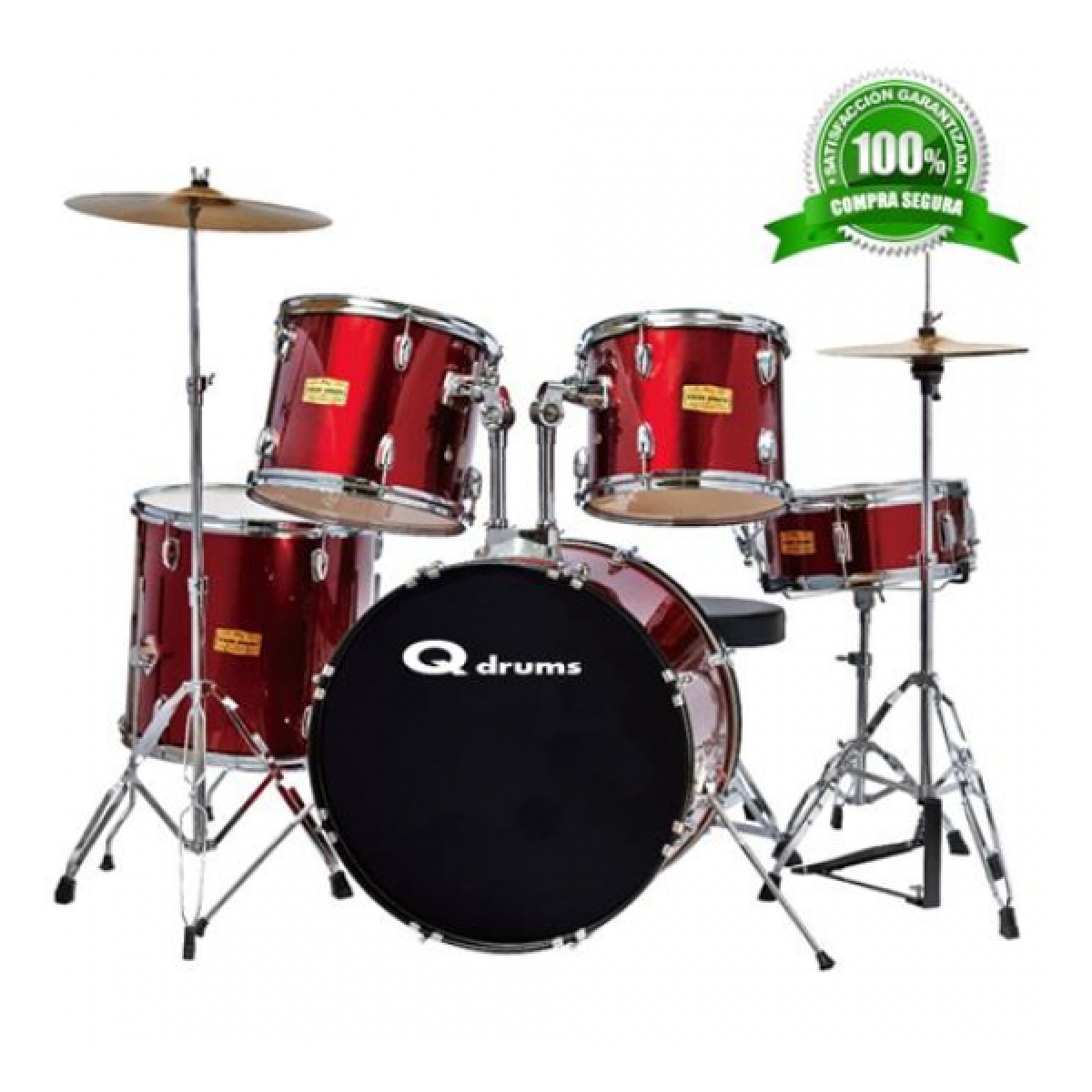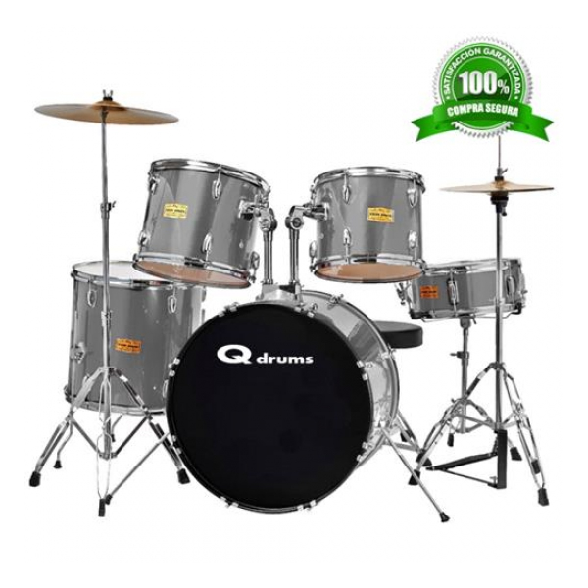 bateria QUICKTENSION CON BANQUETA Y PLATOS PLATEADA