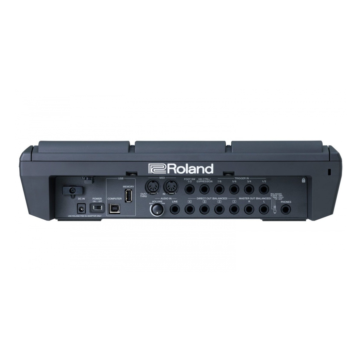 9 pads (con indicadores LED) con la avanzada tecnología de trigger de Roland, con seis pads grandes y tres pads pequeños en la fila superior