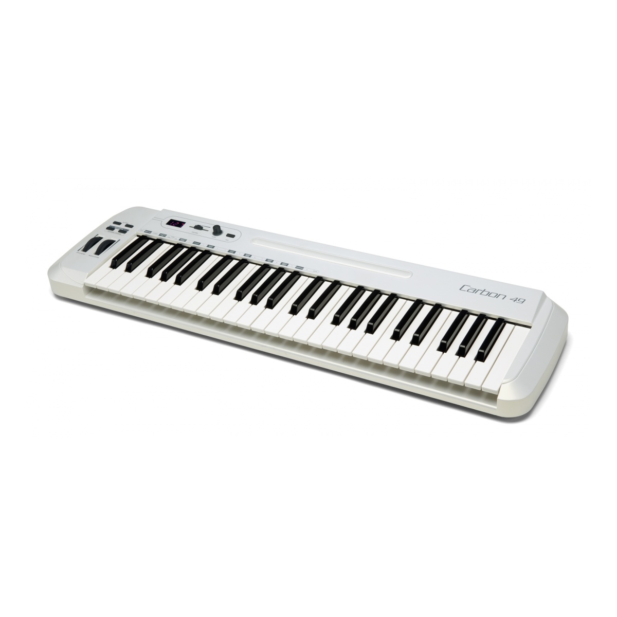 Con los botones dedicados Transpose y Octave, puede cambiar la tecla de cualquier instrumento dado, así como expandir el teclado a un rango completo de 4 octavas, sin usar ningún submenú o tecla shift. Con todas estas características integrales, sin mencionar las ruedas Pitch Bend y Modulation, el Carbon 49 pone a su alcance una amplia gama de expresiones musicales y manipulación de tonos.
