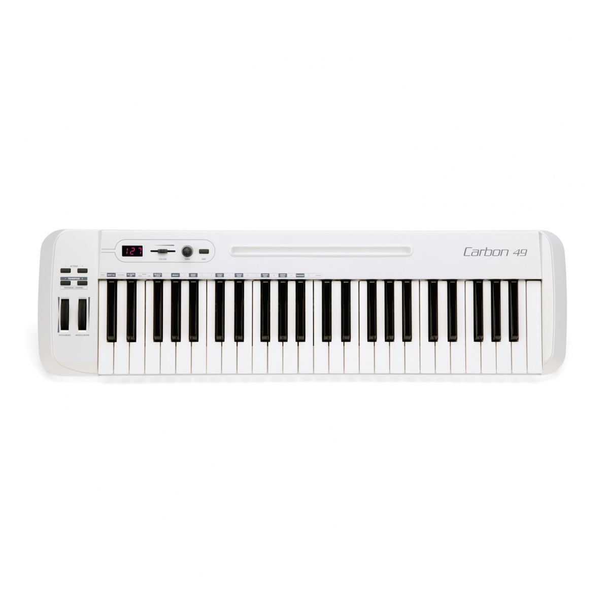 Tome el control de su software de música con el codificador de datos asignables y el control deslizante de volumen del Carbon 49. Para facilitar la edición, los jugadores pueden usar la tecla Editar para ajustar hasta 14 parámetros de control relacionados con el rendimiento. Además, el LED de 3 dígitos y 7 segmentos del Carbon 49 muestra el comportamiento de cada función en tiempo real. Para mayor versatilidad, el Carbon 49 incluye salida MIDI tradicional, entrada de pedal de sostenido y conexiones USB.