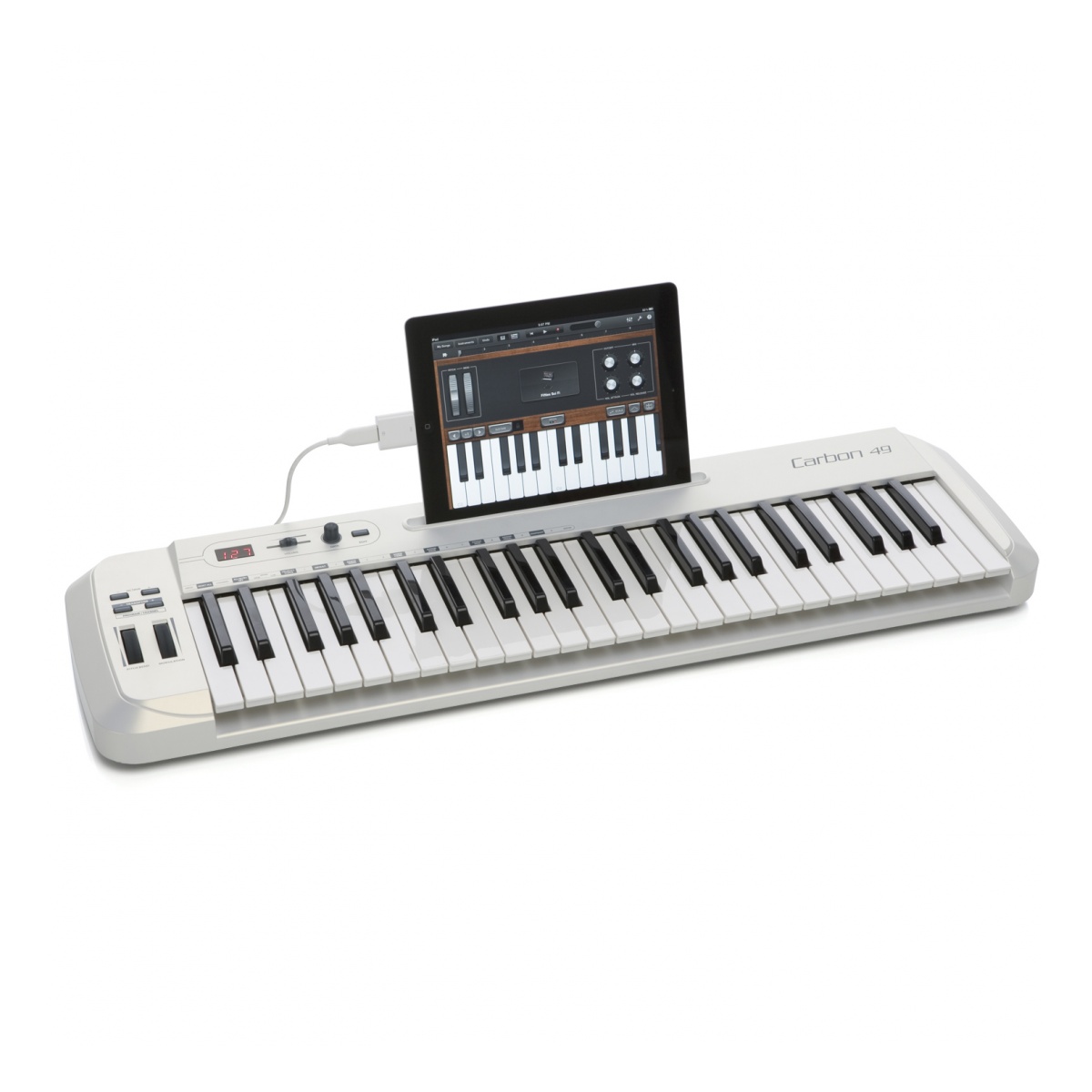 Diseñado con el iPad en mente, el Carbon 49 cuenta con una ranura para iPad integrada. Cuando se combina con el iPad utilizando el Kit de conexión de cámara iPad de Apple o el Adaptador de cámara Lightning a USB, el Carbon 49 es una gran herramienta para hacer música sobre la marcha. Úselo con sus aplicaciones de iPad de música y sintetizador favoritas que admiten controladores MIDI, y para movilidad adicional, el Carbon 49 puede ser alimentado directamente por el iPad