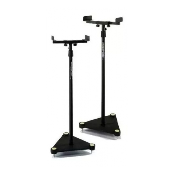 Stands de monitores de estudio MS100 de Samson elevan el rendimiento de su estudio a un nuevo nivel. Se venden como un par, estas bases para monitores de nivel profesional cuentan con un diseño construido en acero con un elegante acabado en negro. Ajustable a 4 ‘de altura, los soportes MS100 cuentan con soportes ajustables que extienden las superficies de sus monitores de hasta 5″ para acomodar varios monitores con un peso máximo de 33 libras cada uno. Además, sus bases metálicas triangulares brindan picos de alfombra para una mayor tracción y almohadillas de goma para reducir las vibraciones.